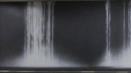 飛沫をあげながら、滝壺へと消えていく水の流れを描いた作品です。滝は千住博の代表的なモチーフであり、多くの方が千住博の代表作として認識しているもので、一筋の滝から、幾筋の流れを持つ滝まで、画面の大きさに応じていろいろな種類を描いています。