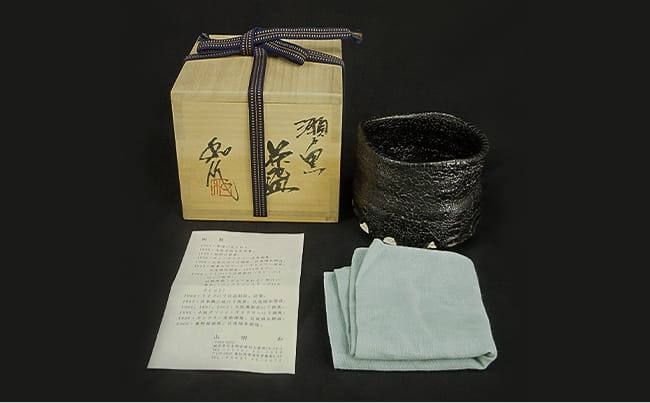 陶磁器や絵画にあるサインや、作者の落款(らっかん=サインと判子)のある「共箱」やご親族やお弟子さん達が極めて落款をする「極め箱」などもあり重要なポイントとなります。