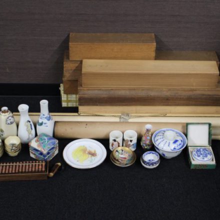 お祖父様が亡くなり遺品整理の際にでてきた品々で、そのまま廃棄するのがもったいないと思われ、骨董価値があるか無いか専門家の意見を聞こうと思われ、当社のサイトを見られ直接ご訪問されました。 ほとんどが贈答…