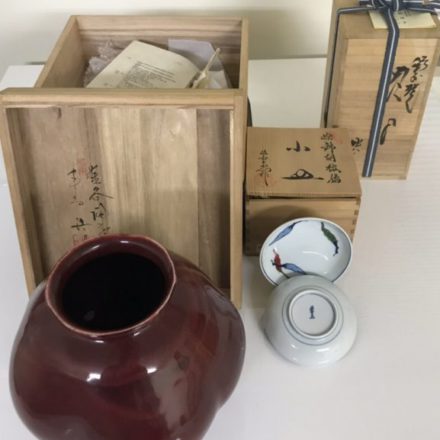 先代から譲ってもらった陶器(徳田八十吉の壺、置物や九谷焼ワイングラス)とガラス類(ベネチアガラスのガラスセットと花瓶)をわざわざ当社にお持ちいただきました。人間国宝、八十吉の壺は金銘の燿彩壺で程度の良…