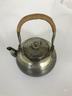 お茶の稽古を長年されてましたがある事情でできなくなり、茶道具を片付けたいとのことでご来店いただきました。売れる物なのか半信半疑のご様子でしたがお持ちになった菊地政光の茶瓶、燗鍋四方鉄瓶や竹影堂の金属皿…