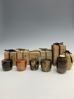ご実家の片付けの際に出てきた茶道具などの骨董品の査定依頼をいただき出張査定にお伺いしました。蒔絵が綺麗に描かれている木下博行作の棗、萩焼の田原謙次の酒杯、高取喜恵造の肩衝(かたつき)茶入など多数をご納…