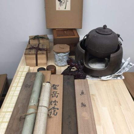 ご自分で集められていたお茶道具や掛け軸をお持ち込み頂きました。ご趣味でお茶やお華をされていているお母様で息子様に付き添われておこしいただきました。ご高齢になられ身辺整理のために、お道具などを徐々に手放…