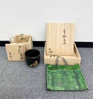 茶道具/仁清写茶碗 文琳茶入 瀬戸焼陶磁器