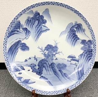 伊万里焼 染付山水大皿 ご自宅の整理に伴い出張査定に伺いしました。昭和時代の看板、食器類や伊万里焼の大皿などざまざまな品がありました。特に、今回買取させていただきました伊万里の大皿がとても保存状態の良…